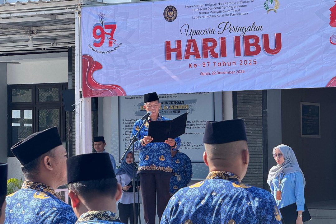 Warta Umum, Pamekasan – Lapas Narkotika Kelas llA Pamekasan melaksanakan Upacara dalam rangka memperingati Hari Ibu ke-97 Tahun 2025. Acara ini berlangsung dengan penuh khidmat dan tertib di Lapangan upacara Lapas, Senin (22/12).